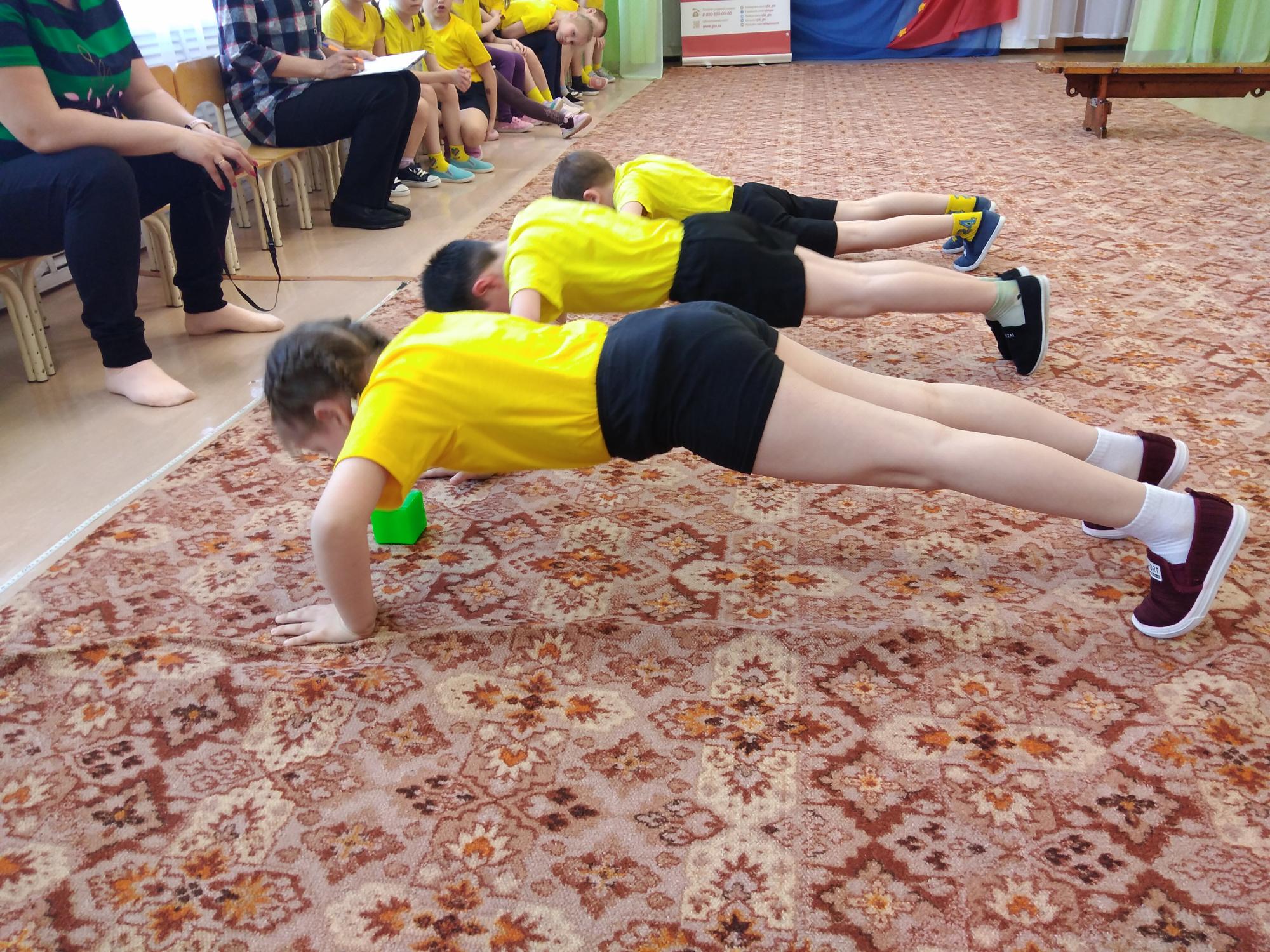 Ребятам предстояло пройти следующие испытания: челночный бег на 3*10м на время, отжимание в упоре лежа на полу, прыжки в длину с места, поднимание туловища из положения лежа на спине, наклоны вперед из положения стоя на гимнастической скамейке. Несмотря на строгие требования к выполнению тестов, ребята отлично справились с заданиями, показав свою выносливость, быстроту, гибкость и ловкость.
