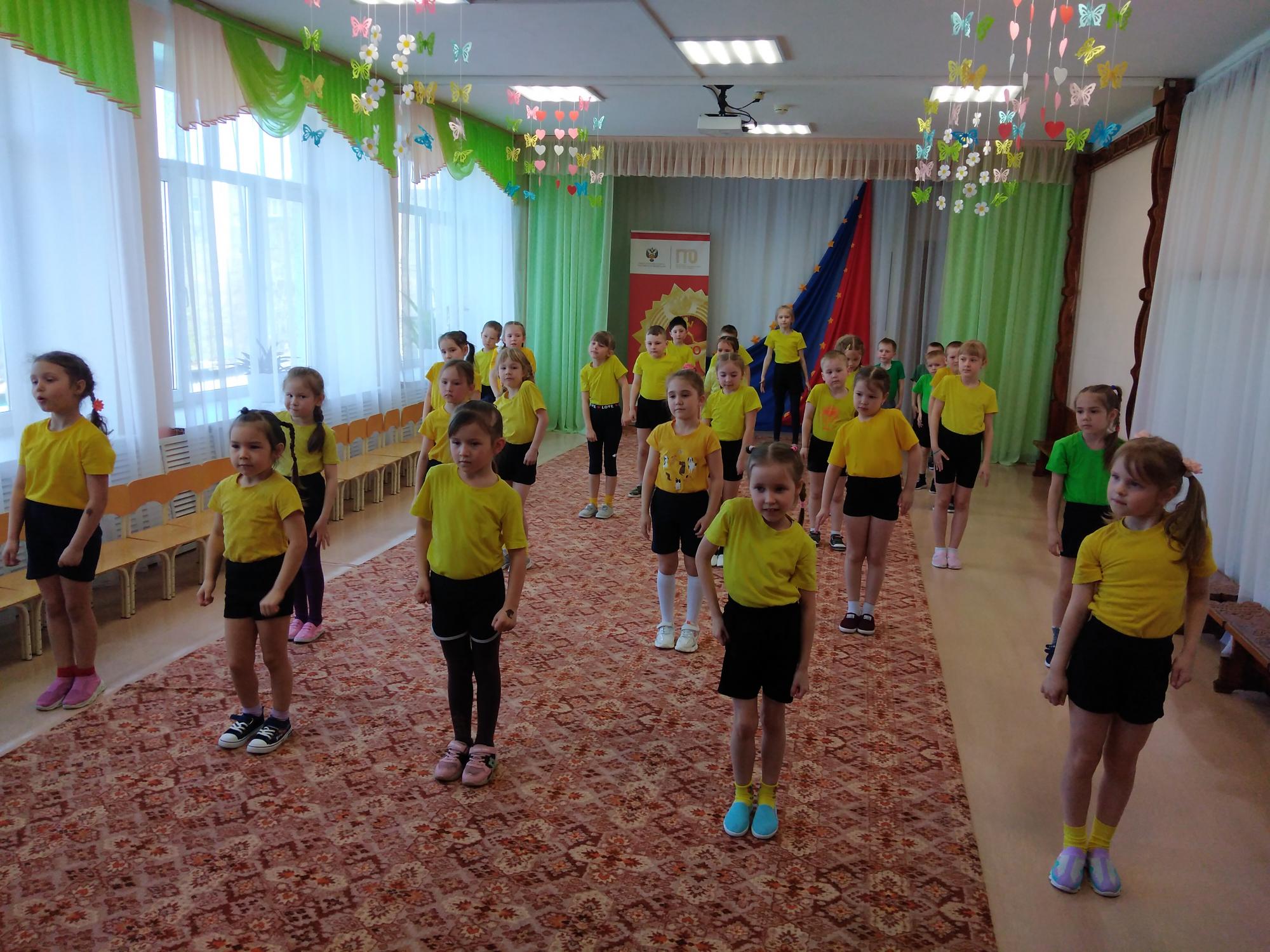 В преддверии знаменательного праздника Дня Победы воспитанники подготовительной группы под руководством музыкального руководителя Словетской Люции Бариевны открыли мероприятие торжественным маршем. Провели весёлую разминку. А Саша Егорова показала свой зажигательный акробатический номер.